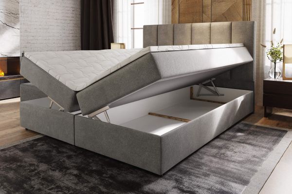 Meril ist ein Marken-Boxspringbett mit hohem Liegekomfort. Es wird komplett wie auf dem Foto dargestellt, geliefert (Dekoration nicht inklusive). Meril lässt sich kinderleicht in ein großzügiges Bett für zwei Personen verwandeln. Zusätzlicher Stauraum in Form eines Bettkastens sorgt für Ordnung.